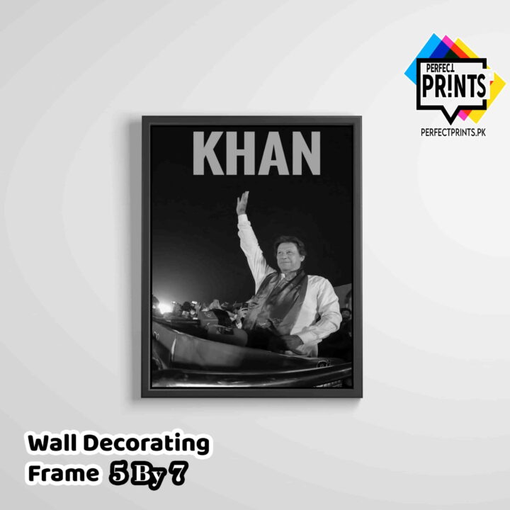 The “Amazing  Khan Pic  frame 5 by 7″ is a small-sized frame designed to showcase a picture of Imran Khan, the former Prime Minister of Pakistan and a prominent political figure. The frame measures 5 inches by 7 inches and is intended to be a decorative piece that can be hung on a wall to display a cherished photograph of Imran Khan. It is likely to appeal to fans, admirers, or individuals interested in political memorabilia.