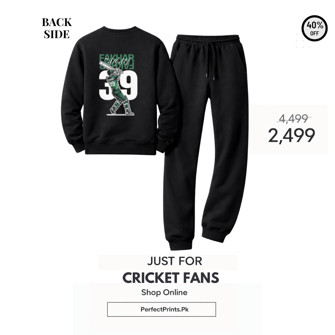 his exclusive Fakhar Zaman Cricket Tracksuit is more than just clothing—it’s a statement of pride, passion, and support for one of Pakistan’s brightest cricket stars. Made from premium fleece fabric, it combines style, comfort, and durability for every cricket fan.