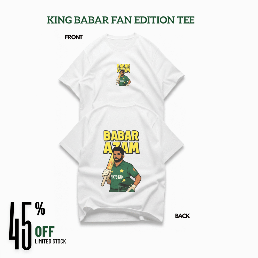 Oversized T Shirt Support your cricket hero in style with this Oversized Babar Azam T-Shirt. Made from soft, breathable fabric, it offers a comfortable, relaxed fit for all-day wear. Featuring bold graphics inspired by Babar Azam, this shirt is perfect for cricket fans. Durable and easy to maintain, it retains its shape and vibrant colors after multiple washes. Available in multiple sizes, it's a must-have addition to any fan's wardrobe