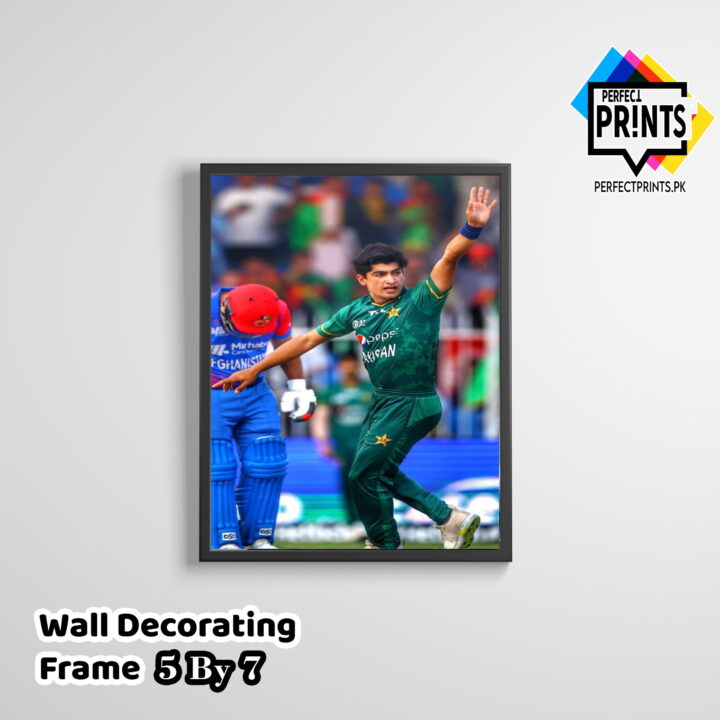 Introducing the awesome “Naseem Shah Wall Frame”! This cool frame is all about celebrating the cricket superstar Naseem Shah in style.
